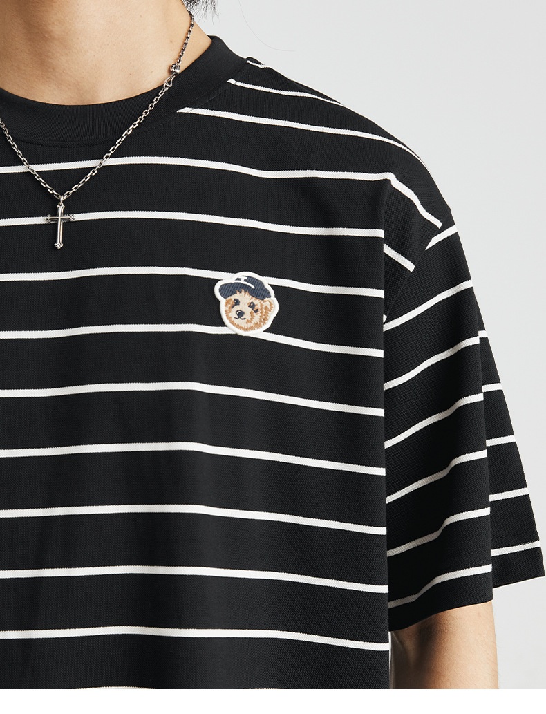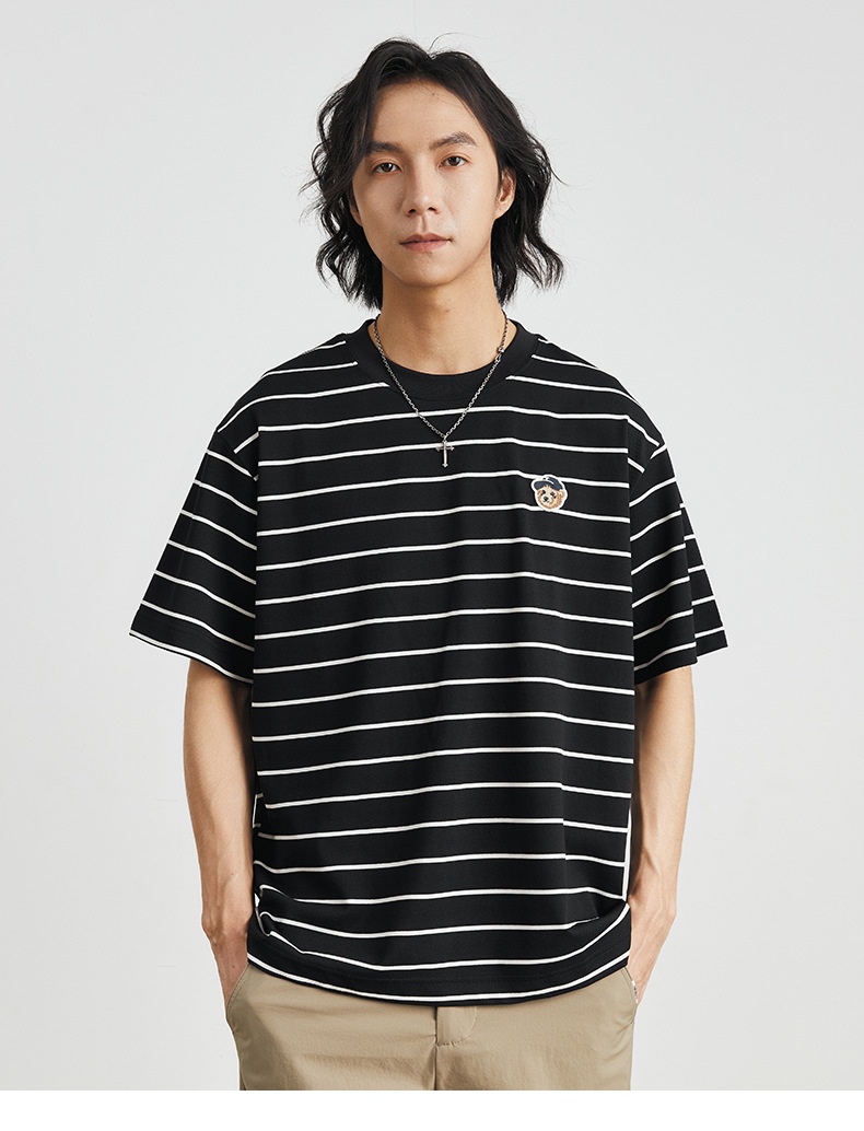 2024 A Righe T-Shirt Ricamo Girocollo Sciolto Tempo Libero Uomini - ZW0659-1