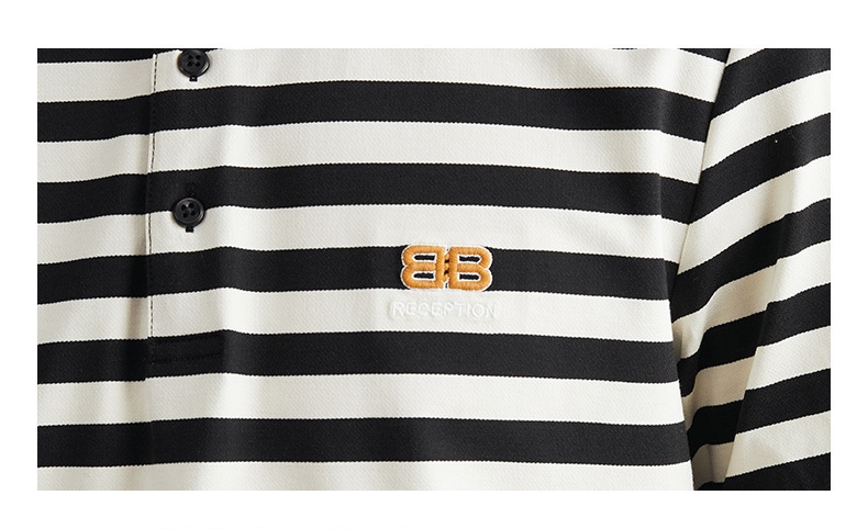 2024 Tempo Libero Ricamo Polo A Righe Con Colletto Risvoltato Uomini - ZJC9800